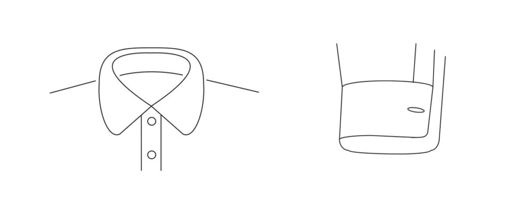 Finally, emblem of an informal and youthful look, is undoubtedly the Korean collar. It finds inspiration in the traditional lines of the Far East. The collar has a very peculiar and characteristic shape. Almost without leaves, it consists of a single “band”, about 3 cm high, buttoned up on the front. The design is minimal, suitable for an extremely fresh and youthful look. Talking about combinations, the best choice is the match with rounded cuffs; while it is obviously impossible to wear a tie.